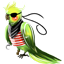 Зеленый говорящий попугай не только клюнет противника в глаз, но и скрасит твой унылый быт анекдотами и цитатами с баша. |