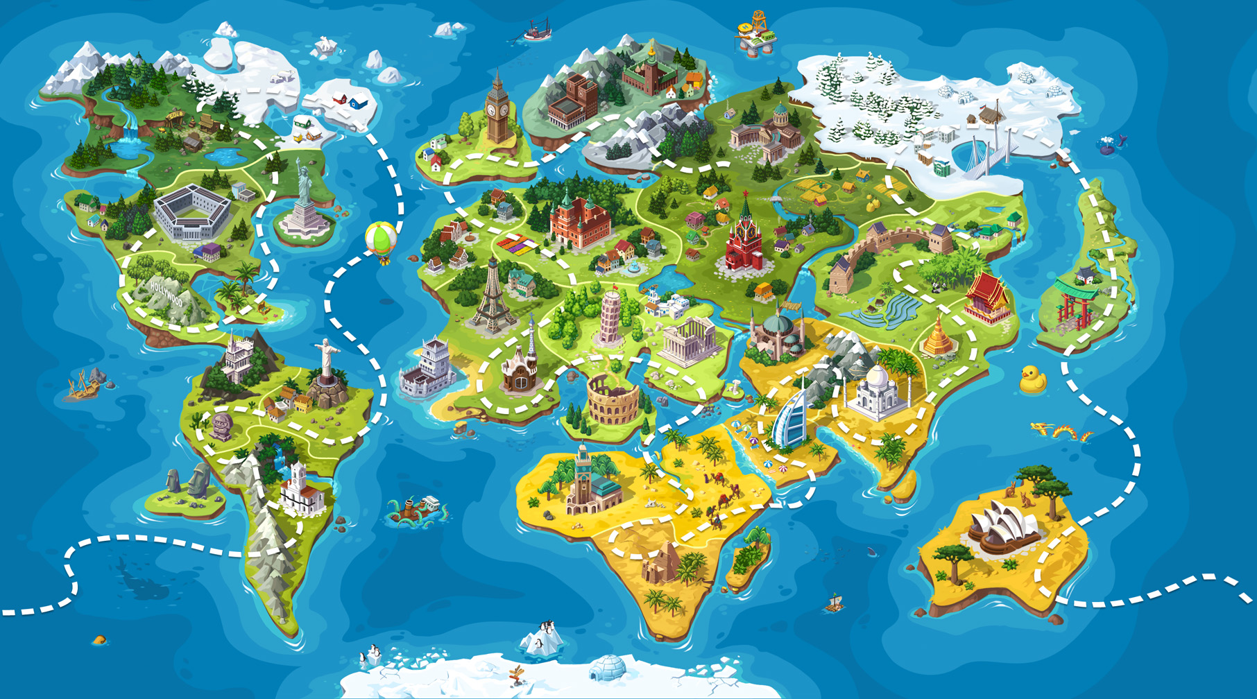 Разумеется, из кругосветного путешествия нельзя вернуться без сувениров, в качестве которых идеально подойдут уменьшенные копии известных на весь мир чудес! А собрав их все, можно стать обладателем самого настоящего Земного Шара — правда, не в натуральную величину.