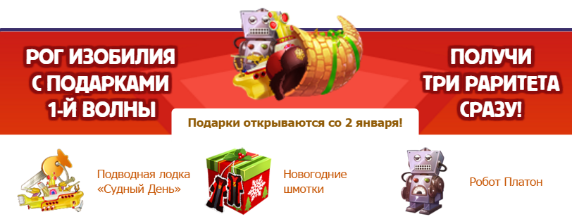 Рог изобилия — это предмет, который содержит в себе все раритеты текущей волны подарков сразу в максимальной модификации и является желанным призом для любого игрока!
